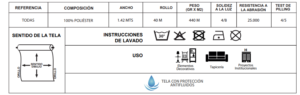 Categories Antifluido, Indoor, Telas