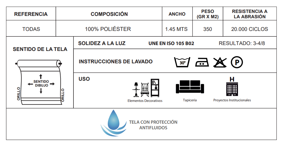 Categories Antifluido, Indoor, Telas